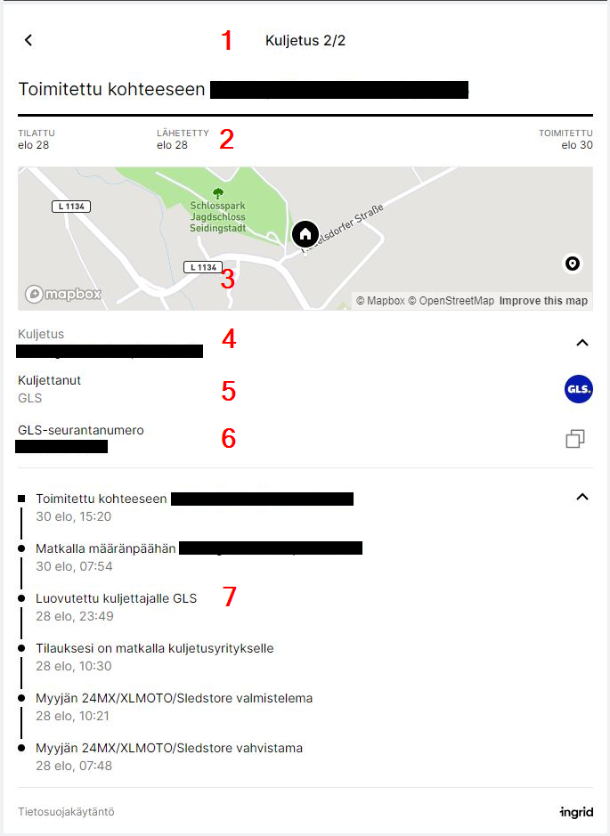 *Jos on lähetetty useita paketteja, tämä sivu ilmestyy ensin ja näyttää kunkin paketin seurantatiedot: